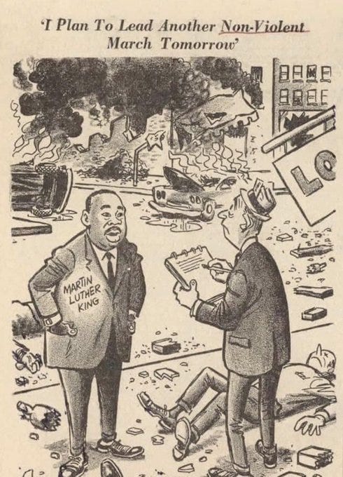 By contrast… Right Wing Politics? If you organized MLK style violent riots for Responsible government and low taxes?