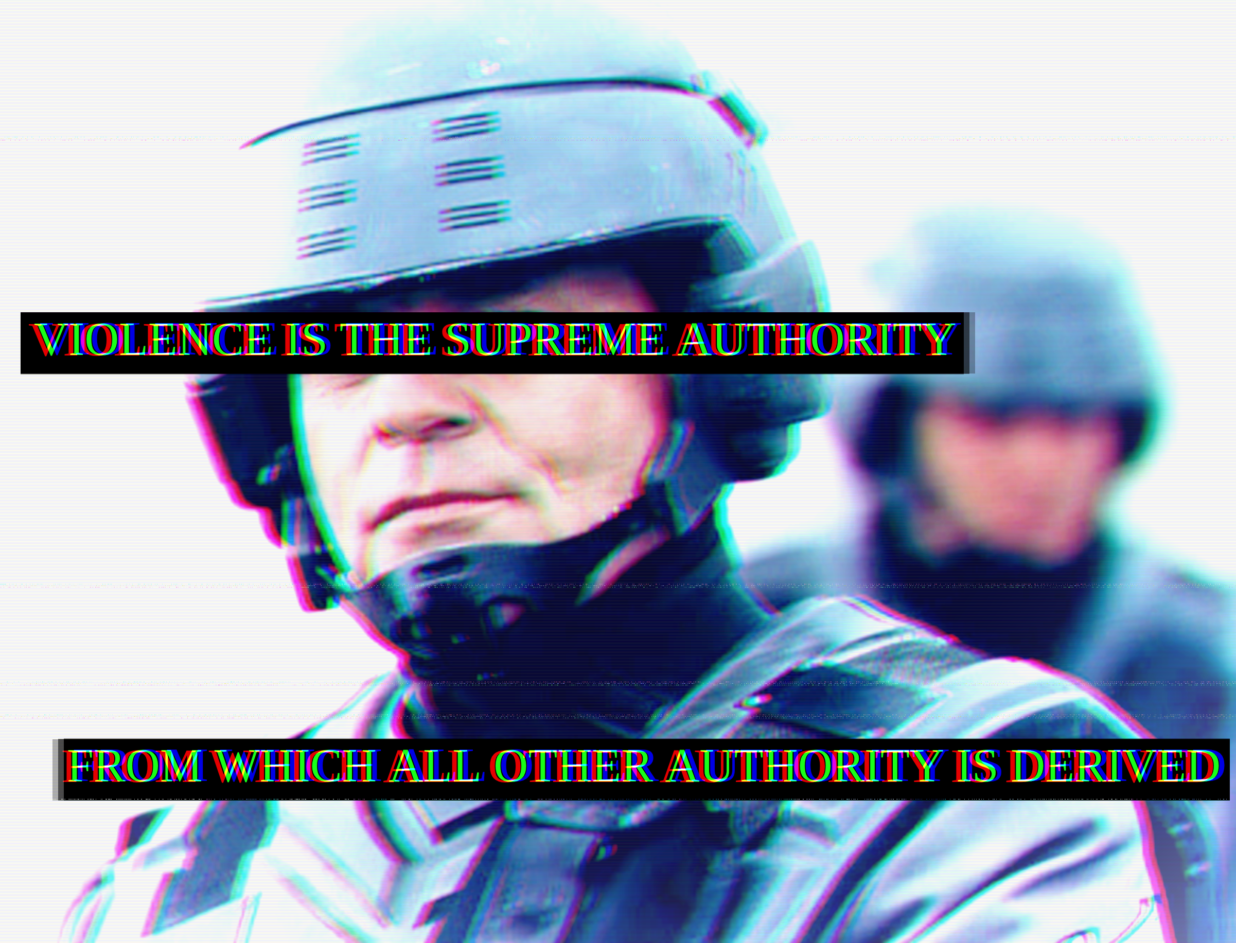 Just as violence is the supreme authority from which ALL other authority is derived, THE ABSENCE of Violence is the absence ALL Authority. Full Stop.