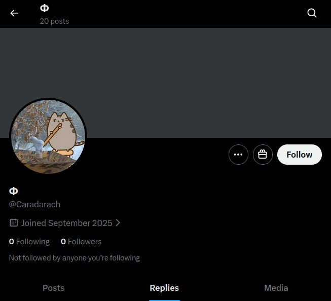 X dot com now allows people to create 10 accounts per phone number. So people create a zero followers count, in addition to their main account, for shitposting (demoralizing) people they're afraid of, to avoid blowback. Their main account might be in their real name.