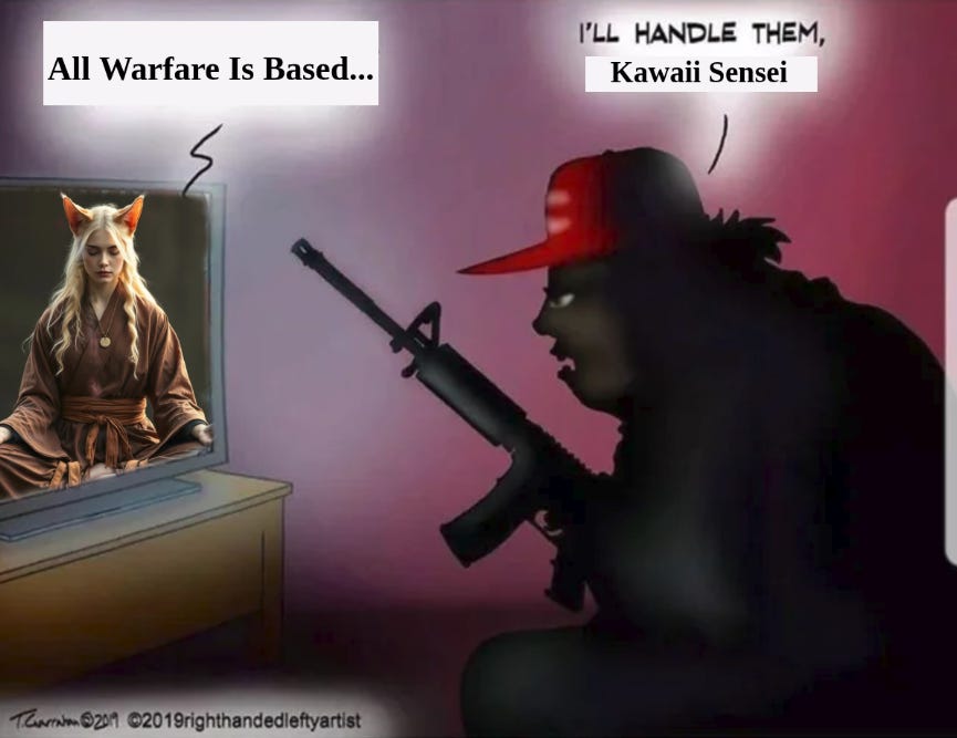 openly does, or rather “Political Violence”, in his excellent first piece (follow him):You don't have to fully endorse violence, you don’t have to go Kawaii Catgirl Crazy… The cute ears aren’t for everyone. that might not be advisable. In your country you may not legally be able to do so... But you can certainly stop denouncing violence.